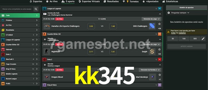 O kk345 oferece uma grande seleção de opções de apostas em e-sports com probabilidades competitivas